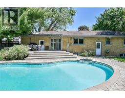 Welcome to this beautifully maintained 3 bedroom, 1.5 bath bungalow that sits on an oversized lot offering the perfect blend of comfort, and outdoor enjoyment. This gem is conveniently located close to schools, parks, Ancaster Memorial Arts Centre, scenic hiking trails, public transit, Meadowlands and is a short walk to the radial trail that leads you to the Ancaster Village where you will find the library, tennis club and unique shopping and dining experiences. An easy commute to McMaster University, downtown Hamilton, area hospitals, and quick access to the 403 and the Lincoln Alexander Parkway. As you step inside you are greeted with a cozy and bright living room w/wood fireplace that wraps around to the open concept kitchen & dining room with sliding doors to the fully fenced backyard featuring a large deck, inground swimming pool and lots of green space. This entire indoor/outdoor living space is set up great for entertaining family & friends or relaxing with a good book after a long day. Primary bedroom includes a ‘bonus’ 2pc ensuite bath. As you head to the basement you will notice the separate back entrance before you reach the fully finished recreation room with large windows that provide lots of natural light. The basement includes laundry, utility and cold rooms along with spaces that could easily be used as a den, craft room, workshop or storage. Tucked away on a low traffic street in the 'Mohawk Meadows' neighbourhood, the curb appeal is first rate w/ beautiful & mature landscaping, including an aggregate finished driveway with room for 3 cars along with a 1 car garage. This is a great find for families, couples, downsizers or anyone looking for one level living. The possibilities are endless as you make this your new home! (id:61594)