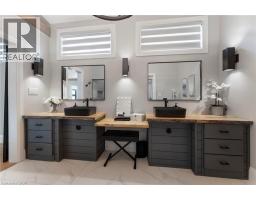 It's not just a home, it's a lifestyle! Sitting on close to a half acre, this sprawling 2655 sq ft. showpiece bungalow masterfully blends historic charm with contemporary sophistication. Situated on an oversized tree lined private oasis and backing onto green space, it's so lush and peaceful, yet functional with two driveways and garage/workshop. Yoga or art studio to your left, backyard and private deck with hot tub to your right, and up a few steps into your dream home. The foyer has a private guest bath and then opens up into a massive, soaring ceiling kitchen, living room and dining room. The heart of the home - the entertainer's dream kitchen, with 10 ft. live edge wormy maple slab island, built in appliances including wine fridge, curated lighting, quartz, gas cooktop, and black sink and fixtures, this room is show-stopping. The dining room and living room are breathtaking. Vaulted ceilings with stone fireplace, beamed ceilings, new windows and doors, it's magnificent. Off the living room is the entrance to one of two completely separate private living spaces. This large bedroom with sitting area, walk in closet and five pc bath with private laundry can easily be converted into two bedrooms (by the Seller). Back through the kitchen, behind the massive 8 foot sliding door, retreat to your luxurious primary suite. Private den, spa like bath with walk in double, stone shower, and a large secluded bedroom with a secondary room which encompasses a w/in closet, laundry, coffee station, and walkout to private sitting area with hot tub. Accessible via the side entry, a few stairs down, you'll find a private wine cellar/speakeasy/cigar lounge for a moody, intimate retreat. Outside, the massive backyard invites you to unwind, with a private art or yoga studio overlooking the green space beyond, fire pit gathering area, detached garage/workshop, all offering endless lifestyle potential right at home Built to the highest standard by a master tradesman. (id:61594)