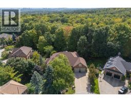 Discover this exceptional custom executive bungalow with southern exposure positioned at the end of a peaceful cul-de-sac on a 1/3 acre lot,where luxury meets tranquility backing onto a wooded ravine connecting the Bruce Trail and all its beauty.This stunning 3+1 bdrm,3.5 bath residence spans 6,327 sq ft of meticulously designed living space,perfectly situated in Burlington’s desirable Escarpment neighbourhood. Natural light cascades throughout the home,enhanced by impressive 10-12ft ceilings on the main level and over 9 ½-12ft ceilings on the lower level.Open concept Great Room features hardwood flooring and a cozy gas f/p flowing seamlessly into the gourmet kitchen.The kitchen showcases pristine cabinetry,a large island and breakfast area w/ convenient access to the outdoor balcony overlooking your backyard.The perfect places for casual entertaining. Elegant formal dining room accommodates larger gatherings,while a separate main-floor office provides a quiet workspace.The oversized primary bdrm offers a private retreat with gas f/p,spacious w/i closet,and updated 5 pc ensuite. 2 additional bedrooms, 4 pc bath,and powder room complete the main level along with the practical elements of a laundry room with direct garage access. The finished LL expands living options w/ rec room complete with pool table area,media room,and a gym area with direct access to the yard. Guest bedroom is located next to a 3-pc bath.The Utility room w/ 12ft ceiling provides ample storage,maximize functionality. Step outside to discover a private retreat w/ manicured gardens featuring an inground saltwater pool & extensive entertaining areas accessible through 2 separate walkouts from the LL. A double oversize garage provides space for a car storage lift system. This prime location offers convenient access to highways,shopping,walking trails,& golf, creating the perfect blend of suburban serenity and urban convenience.Freshly paint thru/out ensures move-in readiness.LUXURY CERTIFIED (id:61594)