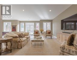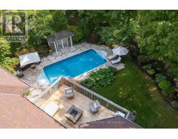 Discover this exceptional custom executive bungalow with southern exposure positioned at the end of a peaceful cul-de-sac on a 1/3 acre lot,where luxury meets tranquility backing onto a wooded ravine connecting the Bruce Trail and all its beauty.This stunning 3+1 bdrm,3.5 bath residence spans 6,327 sq ft of meticulously designed living space,perfectly situated in Burlington's desirable Escarpment neighbourhood.Natural light cascades throughout the home,enhanced by impressive 10-12ft ceilings on the main level and over 9 -12ft ceilings on the lower level.Open concept Great Room features hardwood flooring and a cozy gas f/p flowing seamlessly into the gourmet kitchen.The kitchen showcases pristine cabinetry,a large island and breakfast area w/ convenient access to the outdoor 16ft x 22ft balcony overlooking your backyard.The perfect places for casual entertaining. Elegant formal dining room accommodates larger gatherings, while a separate main-floor office provides a quiet workspace.The oversized primary bdrm offers a private retreat with gas f/p,spacious w/i closet,and updated 5 pc ensuite. 2 addt'l bedrooms, 4 pc bath, and powder room complete the main level along with the practical elements of a laundry room with direct garage access.The finished LL expands living options w/ a rec room complete with pool table area,media room,and a gym area with direct access to the yard. Guest bedroom is located next to a 4-pc bath.The Utility room w/ 12ft ceiling provides ample storage,maximize functionality.Step outside to discover a private retreat w/ manicured gardens featuring an inground saltwater pool & extensive entertaining areas accessible through 2 separate walkouts from the LL.A double oversize garage provides space for a car storage lift system. This prime location offers convenient access to highways,shopping,walking trails,& golf, creating the perfect blend of suburban serenity and urban convenience. Freshly paint thru/out ensures move-in readiness. LUXURY CERTIFIED (id:61594)
