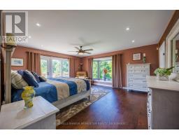 Welcome to your dream home! This exquisite estate offers custom luxury and privacy on a sprawling 20+-acres with OS zoning for other potential business opportunities. Nestled alongside a pristine golf course and featuring two serene ponds, this property provides a picturesque retreat from the hustle and bustle of daily life. Over 8200 sq ft of luxurious living space. 6 spacious bedrooms with 5 having their own elegant ensuite bathrooms, and an office that can be easily converted to a bedroom, heated floor in primary bath with romance tub all custom. 7 bathrooms: 5 well-appointed ensuites with 2 being wheelchair assessable 2 gourmet kitchens with well equipped appliances in lower-level kitchen with industrial sink, upper level has large pantry and extended island , perfect for entertaining and everyday living. Main living room features vaulted wooden ceiling, fireplace, and professional designer bar area . Second living room features another fireplace & vaulted ceiling . Heated 3 car with roughed in area for a possible bathroom. Expansive living areas with exquisite finishes, multiple fireplaces, and custom details throughout. Beautifully landscaped grounds, water, hydro and internet to 3 tents with custom carpets and 40 car parking lot. Repaved driveway (2022), new roof (2019) with 3 skylights. Private pond/w bridge (2020) and electrical outlet, 3 large custom-built decks w/gazebo, walking distance to the golf course. Led spotlights throughout home (2021), large windows; two bay windows (2022) panoramic views, a grand entryway with custom 2 entry door (2022), ample front parking with wifi access. This estate combines the grandeur of an opulent residence with the tranquility of nature, creating a perfect sanctuary for relaxation and entertainment. Whether you're hosting elegant gatherings or enjoying quiet evenings by the pond, this property offers an exceptional lifestyle. Dont miss your chance to own this unparalleled estate with endless possibilities. (id:61594)