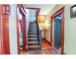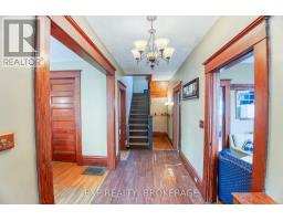 This classic century home is a beautifully preserved piece of history, rich in character and original detail.It's timeless charm is captivating- stunning original wood trim, hardwood floors, soaring ceilings, and large windows that flood the space with natural light. Highlights of the main floor are an elegant dining room that has the original plate shelf around the perimeter of the room, and a walk out through classic, wood, double french doors; a gorgeous living room that has a gas fireplace that honours the original mantel and trim design, and authentic solid wood, double pocket doors that open into a charming parlour area graced by a grand bay window. Upstairs, there is a foyer with a large linen closet, four bedrooms, and a full bathroom (renovated in 2021) with convenient upper-level laundry. The home retains the warmth and charm of its original radiator heating system-run by a modern gas boiler. Outside, the extra-large yard is decorated by flower beds and framed with trees for privacy and shade. There is a double-car garage and circular driveway for ease of access. This home is the perfect place for entertaining or relaxing, both indoors and outdoors. All of this is ideally situated in the heart of Deseronto, close to amenities, parks, and the waterfront. This gorgeous home, where moments with family and friends- and time itself, are treasured, is meant to be yours. Schedule your private viewing today. (id:61594)