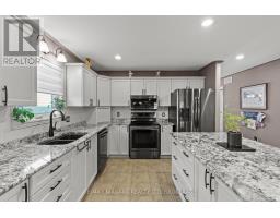 Oversized raised bungalow offering an exceptional layout and an abundance of sought-after features, designed for comfortable living and effortless entertaining. From the moment you arrive at 129 Wellbrook Blvd, the exposed aggregate concrete driveway and modern stucco façade create striking curb appeal. Inside, a versatile formal living or dining space highlighted by soaring cathedral ceilings and a large picture window that fills the home with natural light await. The bright, spacious kitchen features crisp white cabinetry, granite countertops, and a generous island, perfect for gatherings, overlooking both an additional dining area and a cozy family room with a gas fireplace. A walkout from this level leads to an upper deck with views of the beautifully landscaped backyard. The main floor is completed by a private primary retreat with a 3-piece ensuite and large walk-in closet, along with a second bedroom offering ensuite privileges to a 4-piece bath and its own walk-in closet. The lower level showcases why ravine lots with walkout basements are so highly sought after. This bright and inviting space offers oversized windows, a glass patio door leading to a covered concrete patio, and a family room that truly feels like an extension of the main floor. Three additional well-sized bedrooms, a 4-piece bathroom, and a generous utility/storage room provide ample space for growing families and seasonal storage. The backyard is a true highlight, featuring custom aggregate pathways, a two-tiered deck with multiple seating areas, and plenty of room to host family and friends while enjoying the outdoors. Additional features include an attached double-car garage, fresh landscaping, and a prime location close to schools, parks, golf courses, and some of Welland's most desirable neighbourhoods. A rare opportunity, come see it for yourself before it's sold. (id:61594)
