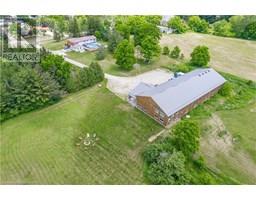 The TOTAL PACKAGE!!! ~6000 sq ft outbuilding & a ~2200 sq ft bungalow, with a grade level walk-out basement, all situated on ~42 picturesque acres. The ~6000 sq ft outbuilding features 3PHASE (600 volts 500 amp) electrical service. In floor heating in the in-law suite & middle bay only. 3 bay doors, office & 3pce bath. PLUS there is a 1 bedroom loft in-law suit. Bright sun filled open concept floor plan. Living room with cozy gas fireplace. Updated kitchen with a huge island with breakfast bar, quartz counters, 36” Wolf stove, stainless steel fridge/freezer & Miele dishwasher. Spacious bedroom overlooking the main floor with wood ceilings. Combination walk-in closet, laundry with full size washer/dryer & 3pce bath. For the INVESTOR there's a potential for great MONEY MAKING OPPORTUNITIES!!! Sprawling ~2200 sq ft 4 bedroom, 3 bath brick home offers a large living room with double sided wood burning fireplace. Eat-in kitchen with a walk-out to a composite deck & above ground pool. Full basement, partially finished with a grade level walk-out. Separate workshop/hobby room. New 125' deep well in 2020. 42 acres with ~30 acres workable. For the owner, you have your own gym (47' X 38'). Close to a full size indoor Pickleball Court, Basketball half court, ball hockey area or Yoga Studio. Other options: pottery studio, arts & crafts, storage for vintage & classic cars or operate a small home based business. (id:61594)