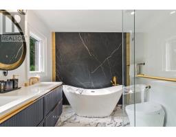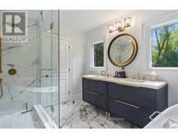 Privacy & exclusivity await in this beautifully renovated family home, located steps away from Lake Ontario & Rattray Marsh Conservation Area! Surrounded by soaring treelines & lush gardens, this secluded home is nestled on a tranquil cul-de-sac & showcases modern luxuries balanced with traditional comforts. Offering nearly 4,500 square feet of livable space, enjoy endless views of the natural surroundings through picturesque windows. The completely remastered main level highlights bright & airy principle rooms featuring vaulted ceilings, timbering beam accents & wood burning fireplaces. The breathtaking bespoke kitchen is fully equipped with built-in JennAir appliances, spacious breakfast area & walk-out access to the oversized sundeck overlooking the backyard. The primary bedroom offers beautiful b/i closets with a spa inspired 5pc ensuite. Remaining bedrooms present large closets & private 3pc ensuites. Convenient upper level laundry room with custom built-in storage. L (id:61594)
