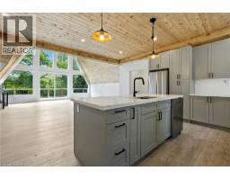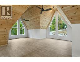 Rare opportunity to own a custom 3-bedroom, 2-bath A-frame + modern hybrid lakefront retreat on spring-fed Wenona Lake - where thoughtful design & exceptional craftsmanship converge in Haliburton's pristine natural setting. This professionally designed residence, completed Oct 2025 by Bridgeco Homes, beautifully blends architectural impact w/ refined comfort & timeless quality. Entering through a bright foyer & well-appointed mudroom, the space flows seamlessly toward a chef-inspired kitchen w/ wet island, brand-new appliances, soft-close cabinetry & generous quartz countertops. Designed w/ entertaining in mind, walk-in pantry provides practical storage & roughed-in versatility for future expansion. Open concept living/dining grand room is anchored by a 500+ sq ft loft above, pine-clad cathedral ceiling & dramatic wall of feature windows that bathe the space w/ natural light. Spacious primary features walk-out to balcony, large walk-in closet & spa-like 5 pc ensuite w/ double vanity, oversized walk-in shower & dreamy freestanding tub w/ breathtaking views of forest & lake. Two additional main floor bedrooms w/ ample closet, stylish 3-piece bath w/ pocket door & main floor laundry adds comfort & everyday ease. Built to exceed expectations both aesthetically & structurally, this home features ICF for superior efficiency, complemented by steel roof & siding for exceptional durability & minimal maintenance. Lower level offers blank canvas for future customization w/ high ceilings, cold room & walk-out to the lake. Surrounded by maple, birch & pine trees w/ west-facing lake frontage, the property enjoys spectacular sunsets & star-filled night skies. Nature is at your doorstep w/ year-round municipal road access. Perfect for private escapes or unforgettable gatherings w/ family & friends, this architectural lakefront retreat offers a unique chance to create your family's legacy on Lake Wenona. Truly a must-see property w/ unique possibilities. (id:61594)