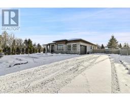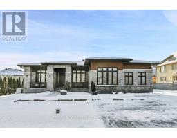 Live your Luxury in Manotick! Crafted by Woodstruct Construction in 2018, this custom bungalow harmonizes quality design, refined finishes and a perfected layout for daily living and sophisticated entertaining. Expect to be wowed by the exquisite detail and workmanship - 10 ft ceilings, natural maple & walnut accents, stunning hardwood flooring and the expansive south-facing windows where the sunlight pours in throughout the day. A showpiece kitchen with quartz counters, a statement island, walk-in pantry, and Bosch suite (gas cooktop, oven, convection oven/microwave, dishwasher) finished with USB outlets and reverse-osmosis water. Relax in the serene primary retreat with dual walk-ins and a spa-level 5-piece ensuite. Four of the five bedrooms enjoy private ensuites; a fifth bedroom flexes as an office, den or organized storage room. Downstairs, a thoughtfully finished, apartment-style level-also accessible from the insulated two-car garage supports multi-generational living with a gym, living and dining areas, office, theatre room and a wet bar rough-in.The backyard living space offers a low-maintenance irrigated yard. Perfect for entertaining in the large gazebo, the oversized solarium, or hot tub; the fenced lot and trees allow for privacy with minimal neighbouring presence. ENERGY STAR heating/cooling/water with Wi-Fi controls, triple-pane front windows, manifold plumbing with individual shut-offs, UV water treatment with softener/iron, high-end two-bed septic, generator with automatic transfer switch, EV outlet, built-in speakers and digital alarm. Eight-foot solid-core Cambridge doors, crown/baseboard and window trim. Minutes to Manotick Village and Hwy 416 with an easy commute to downtown-perfect for the buyer who values craftsmanship, luxury, and design. (id:61594)