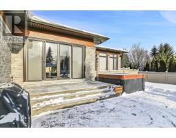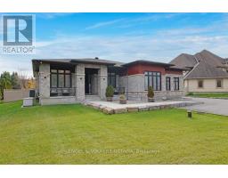 Live your Luxury in Manotick! Crafted by Woodstruct Construction in 2018, this custom bungalow harmonizes quality design, refined finishes and a perfected layout for daily living and sophisticated entertaining. Expect to be wowed by the exquisite detail and workmanship - 10 ft ceilings, natural maple & walnut accents, stunning hardwood flooring and the expansive south-facing windows where the sunlight pours in throughout the day. A showpiece kitchen with quartz counters, a statement island, walk-in pantry, and Bosch suite (gas cooktop, oven, convection oven/microwave, dishwasher) finished with USB outlets and reverse-osmosis water. Relax in the serene primary retreat with dual walk-ins and a spa-level 5-piece ensuite. Four of the five bedrooms enjoy private ensuites; a fifth bedroom flexes as an office, den or organized storage room. Downstairs, a thoughtfully finished, apartment-style level-also accessible from the insulated two-car garage supports multi-generational living with a gym, living and dining areas, office, theatre room and a wet bar rough-in.The backyard living space offers a low-maintenance irrigated yard. Perfect for entertaining in the large gazebo, the oversized solarium, or hot tub; the fenced lot and trees allow for privacy with minimal neighbouring presence. ENERGY STAR heating/cooling/water with Wi-Fi controls, triple-pane front windows, manifold plumbing with individual shut-offs, UV water treatment with softener/iron, high-end two-bed septic, generator with automatic transfer switch, EV outlet, built-in speakers and digital alarm. Eight-foot solid-core Cambridge doors, crown/baseboard and window trim. Minutes to Manotick Village and Hwy 416 with an easy commute to downtown-perfect for the buyer who values craftsmanship, luxury, and design. (id:61594)