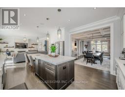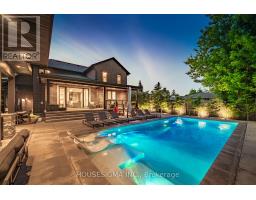Welcome to a masterpiece of modern luxury in South West Oakville, where refined design meets a true resort-style lifestyle. This exceptional custom-built residence offers over 4,200 sq. ft. of meticulously crafted above-grade living space, defined by uncompromising quality and timeless detail throughout. From the moment you enter, architectural excellence is showcased through extensive custom millwork, intricate wall paneling, and bespoke cabinetry that bring warmth and sophistication to every space. The open-concept main floor is an entertainer's dream, anchored by a chef-inspired kitchen with oversized quartz countertops, premium integrated appliances, and seamless flow into the elegant family and dining areas. The primary retreat offers a serene escape with coffered ceilings, a spacious walk-in closet, and a spa-like six-piece ensuite featuring a freestanding soaker tub and private water closet. A rare walk-out basement-highly sought after in this neighbourhood-provides exceptional versatility for entertaining or multi-generational living, complete with a custom wall unit, electric fireplace, and high-efficiency systems. Over $600,000 in recent upgrades elevate the professionally landscaped grounds into a private outdoor oasis, framed by 40 mature European Beech trees and extensive interlock, highlighted by a 16' x 34' saltwater pool with tanning ledge and full Hayward automation. A custom cabana anchors the backyard featuring a 48" gas fireplace, Dekton counters, built-in BBQ, and commercial-grade refrigerator, creating a true resort experience. Additional features include a premium Bowers & Wilkins and Sonance AV system, 7-zone irrigation, designer LED landscape lighting, six-car driveway, heated epoxy garage with EV charging, and 6-camera security system. Ideally located steps from Lake Ontario and Oakville's top-ranked schools, this turnkey residence defines elevated luxury living. (id:61594)