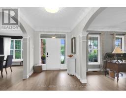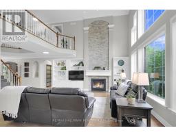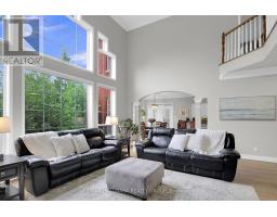 Welcome to 13 Beechgrove Gardens, an elegant all-brick home set on a rare, expansive, and private lot in one of Stittsville's most coveted neighbourhoods. Surrounded by lush landscaping, this impressive home offers a tranquil pond, mature greenery, a 9zone irrigation system, and a three-season built-in room-all complemented by a three-car garage and beautifully interlocked driveway, walkway, and front porch.Step inside to a grand foyer that introduces a breathtaking open-to-above living room with 20-foot ceilings, walls of windows, and a striking fireplace. The main level also features a private office, powder room, and a welcoming family room with a second fireplace. A formal dining room with a butler's pantry seamlessly connects to the gourmet kitchen, complete with a walk-in pantry, bright eating area, and convenient mudroom/laundry with a secondary staircase leading to the soundproof family room above the garage. The sun-filled three-season room with a hot tub provides the perfect spot to unwind while enjoying views of the beautifully manicured backyard.Upstairs, discover four spacious bedrooms, including a luxurious primary retreat featuring a private balcony, a two-sided fireplace shared with the spa-inspired ensuite, and a generous walk-in closet. Bedroom two offers its own ensuite, while bedrooms three and four share a stylish Jack-and-Jill bath.The finished lower level is ideal for both entertaining and relaxation, showcasing oversized windows, an expansive recreation area, a fifth bedroom currently used as a games room, and ample storage space.This remarkable property offers the perfect blend of luxury, comfort, and functionality-a truly rare opportunity to own a one-of-a-kind home in a prime Stittsville location, ideal for family living and entertaining.FURNACES AND AC'S UPDATE SEPT 2025 (id:61594)