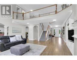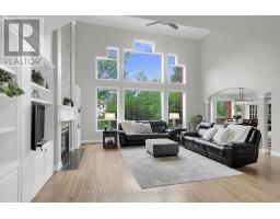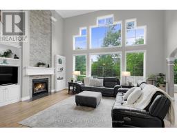 Open House Sunday March 15, 1-3. Welcome to 13 Beechgrove Gardens, an elegant all-brick home set on a rare, expansive, and private lot in one of Stittsville's most sought-after neighbourhoods. Surrounded by lush landscaping, this exceptional property features a tranquil pond, mature trees and greenery, a 9-zone irrigation system, and a beautiful three-season sunroom, all complemented by a three car garage and a stunning interlocked driveway, walkway, and front porch.Step inside to a grand foyer that opens to a breathtaking open to above living room with soaring 20-foot ceilings, walls of windows, and a striking fireplace that fills the space with natural light and warmth. The main level also offers a private office, powder room, and a welcoming family room with a second fireplace. A formal dining room with a butler's pantry connects seamlessly to the gourmet kitchen, complete with a walk-in pantry, bright eating area, and convenient mudroom/laundry with a secondary staircase leading to the soundproof family room above the garage. The sun-filled three-season room with hot tub provides the perfect place to relax while overlooking the beautifully manicured backyard. Upstairs, you'll find four spacious bedrooms, including a luxurious primary retreat featuring a private balcony, a two-sided fireplace shared with the spa-inspired ensuite, and a generous walk-in closet. The second bedroom includes its own private ensuite, while bedrooms three and four share a stylish Jack-and-Jill bathroom.The finished lower level offers the ideal space for both entertaining and relaxation, featuring oversized windows, a large recreation area, a fifth bedroom currently used as a games room, and plenty of additional storage.This remarkable home offers the perfect blend of luxury, comfort, and functionality-a rare opportunity to own a truly special property in a prime Stittsville location, ideal for both family living and entertaining. FURNACES AND AC'S UPDATE SEPT 2025 (id:61594)