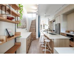 Architect-owner's exceptional four-bedroom home in the heart of Beaconsfield Village, offering beautifully curated living across four thoughtfully finished levels. Designed with remarkable scale and function, the home features 11-foot ceilings on the main floor, Moncer hardwood flooring throughout, crisp contemporary finishes, soundproofed party walls, and extensive custom cabinetry and storage at every turn.A generous foyer with built-in bench seating and storage opens into elegant principal rooms designed for everyday living and entertaining. At the centre of the home, the custom kitchen impresses with Dekton counters and island, premium built-in appliances including a Wolf cooktop, Miele warming drawer, Fisher & Paykel wall oven and steam oven, plus exceptional integrated storage.The light-filled living room is anchored by a wood-burning stove and features a projector with remote and powered screen, with seamless access to the beautifully finished exterior. Cedar decking and fencing create a warm and cohesive outdoor setting, complemented by a propane gas hookup for easy outdoor cooking.The second floor offers flexible family living with three bedrooms or a two-bedroom plus office layout, a stunning custom four-piece bath, and sliding doors by ITAL Door. The third-floor primary retreat is a true sanctuary with custom cabinetry, spa-inspired ensuite, built-in SaunaRay infrared sauna, two skylights, solar tube, and walkout to a private rooftop deck with roughed in outdoor shower.A separate contained basement apartment offers excellent flexibility for a live-in nanny, extended family, or income potential. The main house basement features in-floor heating, while infrastructure upgrades include 1-inch water service, sewer backwater valves, sump pump, and ethernet drops throughout the main house. Heated outbuilding with AC and green roof provides ideal year-round space for a home office, gym, studio, or additional living area. (id:61594)