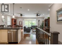 Discover this exceptional home located in one of the most desired neighborhoods of Caledonia. This end-unit bungalow townhome offers 1,295 sq. ft. of beautifully designed spacious main level living. The bright and open layout with 9-foot ceiling features a custom kitchen with granite countertops, seamlessly flowing into a generous living area with oversized sliding doors leading to an upper level deck overlooking a serene park like setting, and is complete with a gas BBQ hookup. The main floor primary bedroom is filled with natural light from 2 windows, complete with a walk in closet and private 3 piece ensuite. Main floor laundry adds effortless convenience to your daily life. The lower level expands your living space with an additional 1,240 sq. ft., featuring a cozy gas fireplace, a large recreation room with ample natural light from its large window and sliding doors, and ample storage. Potential for an in law suite or space for older child in the lower level bedroom that is located right next to a lovely 4 piece bathroom. Step outside to enjoy the walkout patio, landscaped yard, custom water features, and recently installed composite decking, perfect for relaxing or entertaining. Additional highlights include a two-car garage and a driveway with parking for four more vehicles, California shutters throughout, and a built-in ceiling speaker system for premium sound. Plus, enjoy peace of mind with refreshed mechanicals, including updated furnace, air conditioner, and water heater, all replaced in 2020. Don't miss this exceptional home in a prime location! Listing agent is related to seller. (id:61594)
