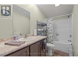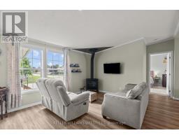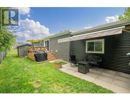 Welcome to the newest home in Twin Elm, a private, rent-controlled, adult-lifestyle land-lease community just a short walk to shopping and Caradoc Sands Golf Club. This 4-year-old energy-efficient Titan Home sits on a clean, dry slab foundation crawlspace and offers modern comfort and peace of mind with a whole-home surge protector and 10kW Generac generator that powers the entire home during outages.Step in from the covered front porch into a bright, open-concept main living space with luxury vinyl plank flooring. The living room features a cozy freestanding natural gas Valour fireplace. The kitchen is well-appointed with Whirlpool appliances, low-profile laminate countertops, ceramic backsplash, pantry with pullouts, an island with seating, pot drawers and direct access to the laundry/mechanical room with additional pantry space.The primary bedroom includes a walk-in closet and ensuite with double sinks and a large shower. Two additional guest bedrooms and a 4-piece main bath with a tub/shower combo are thoughtfully separated from the primary suite. The oversized, R-12 insulated garage/shop includes a workbench and cupboards for storage. A new sliding patio door leads to a large deck with built-in seating, perfect for entertaining, BBQ pad, privacy-screened patio with retractable awning, and a fully fenced backyard perfect for pets and additional privacy. You'll also enjoy an 8x8 pine shed, sandpoint well for irrigation, low-maintenance perennial garden, and a cedar sided raised vegetable bed.The community clubhouse includes a hall, kitchen, weight room, darts, billiards, shuffleboard, and weekly resident-organized events. A designated on-site lot is available for RV or boat storage (for an additional fee). Qualified buyers may assume the current lease. (id:61594)