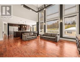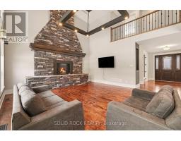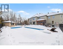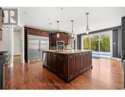 This luxurious custom-built residence showcases superior finishes with detailing throughout. Features includes high end flooring, a beautiful stone fireplace, cherry cabinetry, and custom stone countertops. This unique property offers five bedrooms, two family rooms, three full bathrooms, two powder rooms, a second-floor laundry, a mudroom, a double staircase, and a main floor office, promoting an effortless lifestyle. The kitchen serves as the central gathering area, featuring a spacious island and overlooking the two-storey main floor family room with a tray ceiling and stone fireplace, as well as the fully landscaped rear yard. The upper level includes a private master retreat complete with custom vanities, granite counters, fireplace, a deep soaker tub, a glass shower, lovely ceramic flooring, and an expansive walk-in closet. The lower level remains unfinished, offering high ceilings. The complete landscaping package incorporates a scenic pool. Flooring materials include hardwood, ceramic, and carpet over wood. Sold Under "Power of Sale", Sold "as is Where is". Seller does not warranty any aspects of Property, including to and not limited to: sizes, taxes, history or condition. (id:61594)
