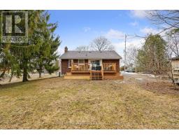 Situated in the desirable hamlet of Grafton, this charming and meticulously maintained bungalow has been thoughtfully designed with comfort and serenity in mind. An accessible and bright front entrance sets the tone for the home's inviting interior. The living room features a timeless design, with a large front window and a carpet-free layout that flows seamlessly into the dining room. This space is ideal for hosting family gatherings and entertaining, complete with a walkout that extends your living area outdoors, creating the perfect setting for alfresco dining. The well-appointed kitchen is both functional and inviting, offering matching appliances, a large window over the double sink, and ample cabinet space for everyday living. The main level includes a sun-soaked primary bedroom, a full bathroom, and a second bedroom, offering comfortable, convenient living. The lower level adds versatility with a cozy recreation room featuring a stove-style fireplace, a spacious guest bedroom with an office nook, a finished laundry room, and ample storage. Plans are available for an additional bathroom, allowing you to further customize the space to suit your needs. Outdoors, the property unfolds into a private natural retreat. A sprawling deck is surrounded by raised garden beds and perennial gardens, with mature greenery, including many species of old-growth trees, creating a peaceful, established setting. A tranquil pond and a well-flowing seasonal creek enhance the landscape, offering a picturesque backdrop and a true connection to nature, while ample green space provides room to relax or entertain. Located just moments from local amenities, close to schools and churches, and down the road from St Anne's, this home also offers easy access to Highway 401 and Highway 2, making it an ideal place to put down roots in a peaceful yet connected community. (id:61594)