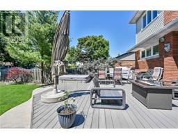 Charming 4-bedroom, 2-bath 2-storey home in highly sought after Hamilton West Mtn location. This home offers plenty of space for todays growing family. Main floor includes large eat-in-kitchen with ample cabinetry, spacious living room, two bedrooms, 3pcs bath and den with patio doors to rear yard deck & hot tub. Two second floor bedrooms and a large basement rec room with fireplace and bar, second bathroom plus storage make this home perfect for families looking for comfort, convenience and functionality. Front/side drive can accommodate parking for 5, plus one in the detached garage. This home is bright and welcoming, features hardwood floors, spacious rooms, and plenty of natural light all in a family friendly neighbourhood. Close to schools, parks, transit, shopping and highway access. (id:61594)
