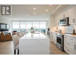 This exceptional 1,775 sq. ft. residence, paired with an expansive 520 sq. ft. private terrace, features 2 bedrooms and 2 bathrooms in one of Guelph's most desirable addresses. With sweeping, unobstructed views and a location only steps from downtown, it offers an unmatched blend of sophistication and convenience.The bright, open-concept floor plan is designed for modern living and accessibility. Premium finishes include wide-plank white oak hardwood floors throughout, soaring 9-foot ceilings, custom wainscoting, and a chef's kitchen showcasing a striking waterfall quartz island, quartz counters, full-height backsplash, LED under-cabinet lighting, soft-close cabinetry, and a suite of high-end stainless steel appliances.Floor-to-ceiling windows fill the living area with natural light, enhanced by remote-controlled blinds for effortless privacy. From the expansive balcony, enjoy panoramic views of Cutten Fields Golf Course along with the Speed and Eramosa Rivers throughout the seasons.The primary retreat is a true haven with two closets, direct access to the terrace, and a spa-inspired ensuite featuring an oversized glass shower. A spacious second bedroom with oversized windows sits adjacent to a contemporary 3-piece bathroom and the convenience of in-suite laundry.Residents enjoy a wealth of amenities within the well-managed building, including a state-of-the-art gym, guest suite, golf simulator, billiards, library lounge, a bar and social lounge with its own terrace, outdoor dining with BBQs, secure indoor bike storage, and ample visitor parking. With a strong sense of community and neighbours who look out for one another, this is more than a home-it's a lifestyle. Steps from fine dining, cafés, shops, Market Fresh, the Farmer's Market, VIA Rail, GO transit, and riverside trails, this condo places you at the heart of Guelph's most vibrant district. (id:61594)