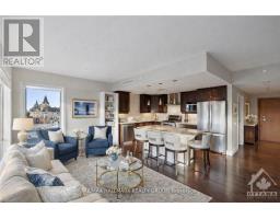 Unbeatable value in one of Ottawa's most prestigious addresses-where suites have sold for as high as $2.4M-this impressive 1,276 sq ft luxury residence deserves to be at the top of your list. Perfectly positioned in the heart of the ByWard Market and just steps to majestic Sussex Drive, the National Gallery, museums, and Parliament Hill, this refined condominium offers the ultimate urban lifestyle with unparalleled access to world-class dining, boutiques, entertainment, and cultural landmarks. Bathed in natural light, the well-designed open-concept layout showcases sweeping views from every room, rich maple hardwood flooring, and elegant living/dining spaces that transition beautifully to an oversized balcony. The custom Deslaurier kitchen is a chef's dream, featuring high-end appliances, sleek cabinetry, a stylish island, and gas stove-ideal for gourmet cooking and sophisticated entertaining. The spacious primary suite impresses with floor-to-ceiling windows, a walk-in closet, and a spa-inspired 5-piece ensuite, while the second bedroom offers equally captivating views of the iconic Chateau Laurier. Residents enjoy exceptional amenities including 24/7 security, a state-of-the-art fitness centre, indoor saltwater pool, hot tub, and a beautifully landscaped rooftop terrace. Parking Unit 39 Level B and Locker Unit 90 Level B are included, along with all appliances, window blinds, washer, dryer, microwave/hood fan, refrigerator, stove, dishwasher, gas stove(s), and automatic garage door opener. Rentals: none. *Some Photos virtually staged. Currently tenanted until end of August 2026. Schedule B must accompany all offers. 24 hours irrevocable on all offers. (id:61594)