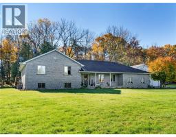 Experience a rare and remarkable property that elevates comfort, flexibility and multi-generational living. Nestled on a pristine 1.06-acre lot, this impressive 4,119 sq.ft., 4-level home is purposefully crafted to enhance your lifestyle - whether entertaining family, operating a home business, or indulging in a private, resort-inspired retreat. Step inside to a refreshed, modern interior featuring updated paint, trim, and select new flooring (2022). The bright, spacious kitchen gleams with stainless steel appliances, highlighted by a new fridge and dishwasher. A formal dining room with rich hardwood floors sets the stage for cherished family dinners and unforgettable celebrations. The fully finished basement expands your living options with a generous wet bar and private garage entrance - ideal for in-laws, movie nights or separate suite. Outdoors, your personal paradise awaits. Summers unfold by the sparkling pool, evenings unwind in the hot tub and weekends center around the oversized deck (2020), serene pond with waterfall and inviting gazebo. A detached, heated shop with loft offers a full kitchen, bathroom, and laundry-perfect for a guest house, studio or business hub. The detached garage is fully insulated, drywalled and ready for your creative vision. Just minutes from Port Dover, Turkey Point, Simcoe and Lake Erie, you'll savor country living with convenient access to vibrant attractions. Recent improvements include a new furncase, central air and owned water heater (2022). Extra highlights: Generac generator, security system, invisible dog fence, Rainmaker spirinklers, separate pool and hot tub water line, plus a detached garage with its own holding tank. This is more than house - It's a lifestyle investment seldom available. (id:61594)