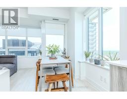 Welcome to this stunning southeast corner unit in the highly sought-after Uptown Core Oakville location! This highly desirable floor plan offers 854 sqft of living space, plus a 62 sqft balcony. Featuring two split bedrooms and two bathrooms, the unit boasts 9' smooth ceilings, pot lights, and wide laminate flooring throughout. Open-concept modern kitchen and living/dining space. The kitchen has been beautifully upgraded with granite countertops, a center island, a stylish backsplash, and sleek stainless steel appliances with an integrated dishwasher, and a fridge. The master bedroom comes with a 3-piece ensuite and a spacious closet. Enjoy the convenience of in-suite laundry, along with one parking space and one locker. With large windows and a balcony, this home is open, bright, and offers unobstructed southeast views. Enjoy the luxury of 24-hour concierge service and access to fantastic amenities, including the Chef's Table, a wine-tasting space perfect for entertaining in a high-end atmosphere, a state-of-the-art fitness center, an outdoor pool, a Pilates room overlooking the garden & patio, a zen space, a ping-pong room, and a theater. This prime location is just steps away from Walmart, Superstore, LCBO, banks, shopping stores, and restaurants. Top-ranked schools are nearby, and it's conveniently located close to Hwy403/410, Go Transit, 5 minutes from Sheridan College, and just a 20-minute drive to UTM. (id:61594)