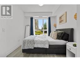 Rare ground-floor corner unit at Utopia Condos featuring 1 bedroom + den (converted to a true second room), 2 full bathrooms, and a private patio with direct courtyard access. Offering the privacy of a detached home with the convenience of condo living, this 690 sq ft home is filled with natural light, a spacious living area, a modern kitchen with ample storage, and in-suite laundry. The primary bedroom features an en-suite and offers courtyard views, while the den, complete with a full wall and door, is ideal as a guest room or office. An oversized locker located right beside the unit, along with 1 underground parking spot, adds unmatched convenience. Enjoy the building's amenities, including a fitness room, rooftop patio, party room, and bike storage. Steps to Sobeys, Dollarama, schools, and parks, with minutes to the QEW and the upcoming GO Station, this is a rare opportunity for professionals, downsizers, or investors seeking modern comfort in a growing community surrounded by vineyards. (id:61594)