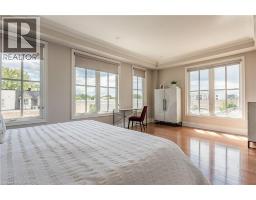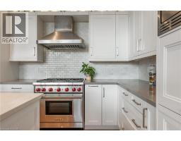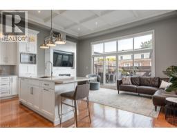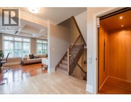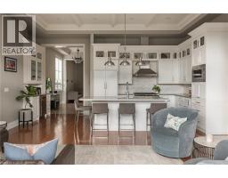 Welcome to Village West a boutique enclave of upscale freehold townhomes set in Oakville’s downtown core. This rare end-unit feels more like a New York loft than a traditional townhouse. With soaring 12-foot ceilings and loaded with huge windows throughout, the interior is defined by its sense of volume, openness, and sunlight. Where every room feels generous in scale and effortlessly connected. From the moment you step inside, you’ll notice the proportions: expansive principal rooms, wide hallways, tall door thresholds, and wide staircases with oversized landings. The dining room is truly grand, while the adjoining kitchen and family room are framed by a dramatic, sky-high coffered ceiling. The kitchen has been fully renovated, featuring high-end appliances, sleek finishes, and a layout designed for both everyday living and entertaining. Hardwood flooring runs throughout the home, complemented by two fireplaces and the convenience of a private elevator to every level. The double-car garage is oversized, providing not only secure parking but also ample room for storage. On the main level, a flexible office/sitting room overlooks the landscaped front and side gardens, where mature plantings and trees create privacy and a lush green outlook. On the third level, two very large bedrooms, each with its own ensuite, are generously proportioned making them a flexible space for various needs. The outdoor living is equally impressive. A 650 sq ft south-facing terrace offers a private retreat with enough room to entertain on a large scale or simply unwind in peace. The lower level extends the living space even further, perfect for a home gym, office, media room, or whatever suits your needs best. Village West is as practical as it is refined. This enclave is beautifully maintained, with a welcoming atmosphere and neighbours who take pride in their homes. All this and just steps to downtown Oakville’s shops, dining and the lakefront parks that make this location so desirable. (id:61594)