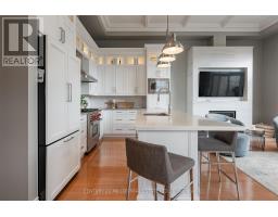 Welcome to Village West a boutique enclave of upscale freehold townhomes set in Oakvilles downtown core. This rare end-unit feels more like a New York loft than a traditional townhouse. With soaring 12-foot ceilings and loaded with huge windows throughout, the interior is defined by its sense of volume, openness, and sunlight. Where every room feels generous in scale and effortlessly connected. From the moment you step inside, youll notice the proportions: expansive principal rooms, wide hallways, tall door thresholds, and wide staircases with oversized landings. The dining room is truly grand, while the adjoining kitchen and family room are framed by a dramatic, sky-high coffered ceiling. The kitchen has been fully renovated, featuring high-end appliances, sleek finishes, and a layout designed for both everyday living and entertaining. Hardwood flooring runs throughout the home, complemented by two fireplaces and the convenience of a private elevator to every level. The double-car garage is oversized, providing not only secure parking but also ample room for storage. On the main level, a flexible office/sitting room overlooks the landscaped front and side gardens, where mature plantings and trees create privacy and a lush green outlook. On the third level, two very large bedrooms, each with its own ensuite, are generously proportioned making them a flexible space for various needs. The outdoor living is equally impressive. A 650 sq ft south-facing terrace offers a private retreat with enough room to entertain on a large scale or simply unwind in peace. The lower level extends the living space even further, perfect for a home gym, office, media room, or whatever suits your needs best. Village West is as practical as it is refined. This enclave is beautifully maintained, with a welcoming atmosphere and neighbours who take pride in their homes. All this and just steps to downtown Oakvilles shops, dining and the lakefront parks that make this location so desirable. (id:61594)