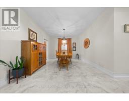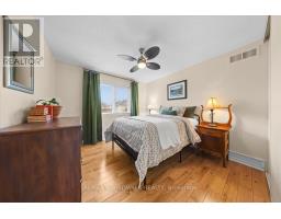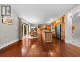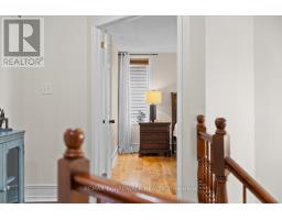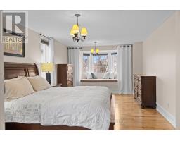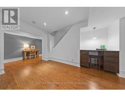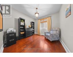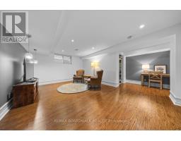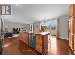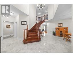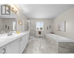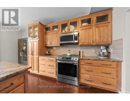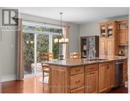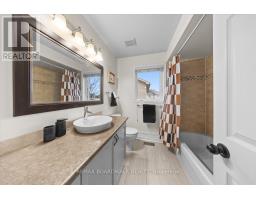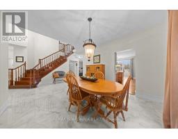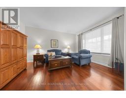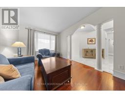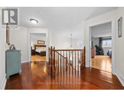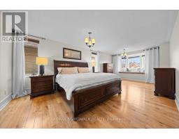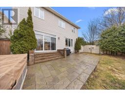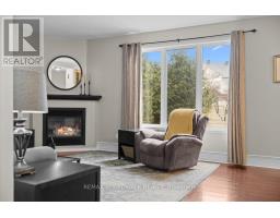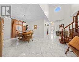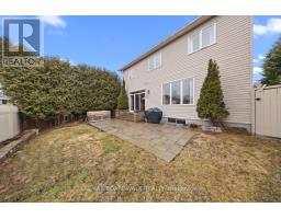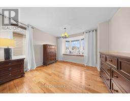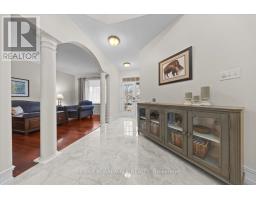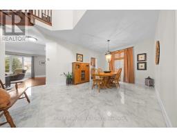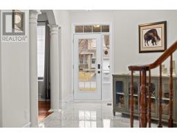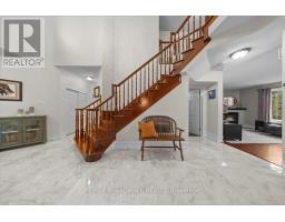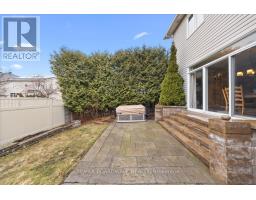 Positioned on a quiet interior street, this detached 4 bedroom home w/main floor den is defined by a balanced twin roof peaks, a covered front veranda, taupe brick front exterior, interlock walkway, & double car garage. The front entrance is highlighted by front door w/transom, opening to a two-storey high foyer w/oversized tile, hardwood flooring, high baseboards, & a circular staircase. Architectural detailing continues into the formal living room, introduced through a curved archway w/Roman columns, 9' high ceilings, & a full-height picture window. The open dining area connects seamlessly to a redesigned centre island kitchen featuring granite countertops, extended breakfast bar, multiple drawers, 24" deep pantry, horizontal tile backsplash, glass accent cabinetry, upper mouldings, & a recessed 3/4 split sink. The adjoining eating area is framed by a three-panel patio door w/transom, enhancing natural light & outdoor living connection.The family room is anchored by a corner fireplace, w/an adjacent main floor den/office offering functional flexibility. A two-piece powder room & laundry room w/overhead cabinetry complete the main level. The upper level presents hardwood throughout the landing, a primary suite w/multiple windows, front window seat, sitting area, double closet including walk-in, & a renovated ensuite w/moulded soaker tub, quartz topped vanity, glass shower, & oversized tile. Three additional bedrooms offer generous proportions & ample storage. The main bath features a raised sink & vanity.The lower level includes a finished recreation room w/pot lighting & wide plank flooring, storage area, rough-in for future bathroom, & a hobby room w/oversized window accessed through twin doors. Additional features include inside access to the garage. The private rear yard offers western exposure, stone patio, PVC fencing, & hot tub, 24 hour irrevocable on all offers. (id:61594)