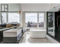 Welcome to a Stunning New Modern Custom-Built Home, This Luxurious Residence Spans Approximately 4500 sqft of on south lot. Walking distance to Yonge and Sheppard, Very Close to 401. Heated Grand Foyer and Office featuring soaring 14ft ceilings. The open-concept, thoughtfully designed interiors feature porcelain walls, enhanced by stylish wall and home decorations, and two gas fireplace. The kitchen is a spacious chefs dream with Wolf Appliances, boasting a porcelain wrapped center island with a black porcelain breakfast table, providing a spacious surface perfect for dining and entertaining.. The upper-level features 4 generously sized bedrooms, each with their own Ensuite bathroom, walk in closets. Natural light from 3 skylights and balcony. The bright 13ft walkout basement includes bar, bathroom and 2nd laundry with beautiful Italian porcelain floor. 10ft Main and 2nd Floor, 13Ft basement, Heated Foyer, Master washroom and Basement floor. Pet Shower Station by the side entrance. Panelized Full Automation Control 4 system, 8 Cameras, 14 Russound Speakers system, All Wired Electrical Elegant Blinds, Full Alarm System, Trim less Walls-Windows & Doors, Smart toilets & Much More. This home seamlessly blends luxury and comfort with contemporary design, all in a fantastic location! (id:61594)
