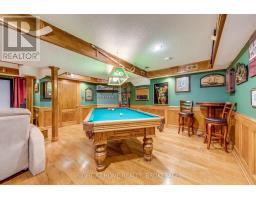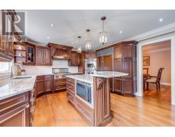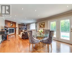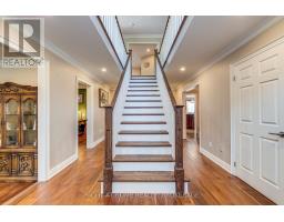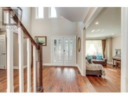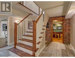 Rare Gem in Glen Abbey! Discover this beautifully renovated 4-bedroom family home nestled on a quiet, child-safe street. Inside, a refined open-concept layout, perfect for family living and upscale entertaining. The grand foyer welcomes you with rich, wide-plank hardwood floors and a classic Scarlett O'Hara staircase. Enjoy formal gatherings in the sunken living room with 9' ceilings and gas fireplace, or host dinners in the separate dining room, both adorned with crown molding and elegant finishes. The chef-inspired kitchen is the heart of the home, complete with granite counters, high-end built-in appliances (Wolf cooktop, Sub-Zero fridge, Miele dishwasher, double Dacor wall ovens), a large island, and custom cabinetry. The kitchen flows seamlessly into the spacious family room with a second gas fireplace, and the breakfast area opens to a professionally landscaped backyard. Walk out to your private backyard oasis featuring sunny west exposure, saltwater pool, hot tub, waterfall, diving rocks, stone patio, and a garden shed for convenient storage of lawn care tools and pool equipment. Mature landscaping creates the perfect blend of privacy and charm. Upstairs, the luxurious primary suite includes a large walk-in closet with organizers and a spa-like ensuite with heated floors, freestanding soaker tub, frameless glass shower, and dual vanity. Three additional bedrooms with large windows and a renovated 3-piece bath (with heated floors) complete this level. The finished basement is an entertainer's dream, featuring a home theater with projector and screen, wet bar, pool table area, home gym, wine cellar, and a 3-piece bath with sauna. There's also ample storage, a large workshop with UV air filtration, and space for hobbies or projects. Walk to top-rated schools, Community Centre, trails, shops, and transit. Easy access to highways and GO Train. A great opportunity to own a truly turnkey home in one of Oakville's most desirable communities. Confidently shows A+++! (id:61594)