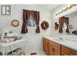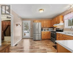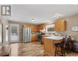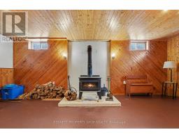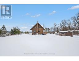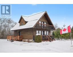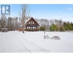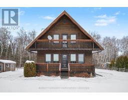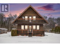 Well-maintained chalet-style home set on a flat, private lot just under an acre, offering peaceful rural living with convenient access to nearby towns. Finished in cedar wood siding with steel roof complete with snow guards, this home has been thoughtfully cared for by its long-time owners. The main level offers two entrances, with the side entry leading into a bright, nicely kept kitchen open to the dining area. A main floor bathroom is located just off the entry, while a hallway connects to the front living room featuring a propane fireplace and access to the covered front porch. Stairs from this hallway lead to both the upper level and basement. Upstairs includes a primary bedroom with access to a private upper deck overlooking the front of the property, two additional bedrooms, and a full bathroom. Original finishes and carpeting remain in excellent condition throughout the upper level. The partially finished basement provides additional living or recreation space with pine wood-clad walls and ceiling, a wood-burning fireplace, open concrete floor, laundry and utility area, and generous storage. Outside, two detached sheds (approximately 200 sq ft and 80 sq ft) offer excellent storage for garden and outdoor equipment. The level lot provides open lawn space with a wooded backdrop, ideal for enjoying nature and outdoor living. Ideally located less than 15 minutes to Arnprior, 18 minutes to Renfrew, and 21 minutes to Calabogie, offering easy access to shopping, dining, healthcare, and year-round recreation, while enjoying the quiet of a rural setting. 24 Hours Irrevocable on all offers. Some photos are digitally enhanced. (id:61594)