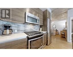 Welcome to OneEleven Condos, Suite 1313 - refined downtown living in the heart of King West. This boutique 1+1 bed residence blends raw architectural character with elevated design. Exposed 9ft concrete ceilings & floor-to-ceiling windows create a modern loft aesthetic, while the clean open-concept layout feels both inviting and sophisticated. The quiet east facing exposure overlooks open terrace space, offering bright, unobstructed views & soft morning light. Engineered hardwood floors ground the suite in warmth, complementing the understated luxury of the kitchen - featuring custom cabinetry, quartz countertops, sleek backsplash, integrated s/s appliances, breakfast bar & a gas range for elevated everyday cooking. Enjoy thoughtfully curated lighting throughout the suite. The spacious den is truly versatile, easily functioning as a second bedroom or private home office. Thoughtfully designed, the layout feels generous and highly functional throughout. Step outside to the extra-large outdoor space generously spanning the entire length of the suite - complete with a rare gas BBQ line. Whether it's morning coffee, a quiet read, or hosting friends in the evening, this terrace delivers effortless indoor-outdoor living. Enjoy the convenience of a dedicated parking space and extra-large private locker, both conveniently located along with one of the lowest maintenance fees in the city at just $541.55. Residents enjoy curated amenities including a rooftop terrace with BBQs, party room, guest suites, & concierge service. Perfectly positioned next to the future King-Bathurst station on the Ontario Line, this location is primed for continued growth. Walk to gyms, grocery, pharmacy, hardware stores and attractions like Stanley Park, St. Andrews Playground, Waterworks Foodhall, The Well, STACKT Market, & some of the city's best restaurants and cafés. Minutes to the waterfront along Lake Ontario with quick access to the Gardiner Expressway. (id:61594)