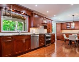 Nestled on a quiet crescent in the highly sought-after Falgarwood neighbourhood, this rare property sits on a stunning 75x175 ft ravine lot w/ no rear neighbours, offering unmatched privacy & breathtaking views year-round. From the moment you arrive, the home's curb appeal impresses w/ its aggregate driveway, stone walkway, & inviting covered TimberTech front porch w/ overhead fan & lighting. Inside, you'll find large primary living areas featuring crown moulding throughout, 2 cozy gas fireplaces, & hardwood floors on the main level, creating a warm & elegant atmosphere. The chefs kitchen, fully expanded in 2015, features granite countertops, a custom window seat, bar, & pantry, & opens to a spacious back deck w/ a skylight overlooking the peaceful ravine, perfect for morning coffee or summer entertaining. This home has been meticulously updated over the years, including spa-like bathrooms with soaker tubs and glass showers, a fully finished basement w/ custom built-ins (2017), & a spectacular great room addition w/ a brand-new roof, soffits, & eaves (2024). Upstairs showcases engineered hardwood flooring, a skylight above the landing, & a private balcony in the primary suite, while 3 additional bedrooms feature soft, neutral carpeting. The backyard is a true sanctuary. Backing onto a lush, tree-filled ravine, it offers a level of privacy rarely found in Falgarwood. Professionally landscaped gardens w/ accent lighting, irrigation system & a soothing waterfall feature create a magical atmosphere, perfect for unwinding after a long day or hosting summer gatherings. W/ new fencing on both sides, this outdoor oasis is completely enclosed, offering peace of mind & a sense of seclusion. Located in the top-rated Iroquois Ridge School District, & minutes from parks, trails & convenient amenities, this home offers a rare blend of modern comfort & natural beauty. W/ its extensive renovations & incredible ravine setting, you'll fall in love with the moment you step inside. (id:61594)
