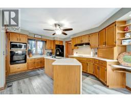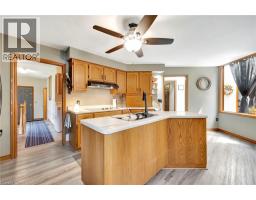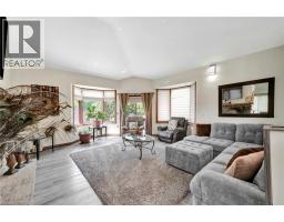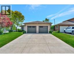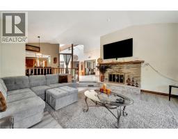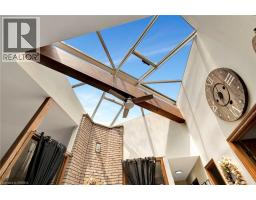 Welcome home to 132 Oak St., Simcoe. Distinctive. Expansive. Impeccably Designed. A sprawling 2339sq ft above grade all-brick, custom-built residence nestled just minutes from the shores of Lake Erie, surrounded by parks and schools, over half a dozen golf courses, and a wealth of local amenities. Situated on a rare 0.26 acre parcel within city limits, the property enjoys privacy with no immediate neighbours on three sides. Step inside to be greeted by a generous foyer that opens into one of the home's most breathtaking features: a soaring vaulted atrium with a dramatic floor-to-ceiling brick wall, a glass ceiling that floods the space with natural light, and a striking wood beam adorned with a ceiling fan. The home’s large principal rooms impress with vaulted ceilings, recessed lighting, and a stunning double-sided gas fireplace that seamlessly connects the formal living room and a sunken family room. Sliding glass doors open onto a brand new concrete patio overlooking the expansive side yard—perfect for outdoor entertaining. The executive-style primary suite offers a peaceful retreat with two closets, a skylit ensuite bathroom, and ample room to relax. Two additional bedrooms, a stylish 4-piece main bath, a powder room, and a convenient main-floor laundry room complete the main level. The fully finished lower level is an entertainer’s dream. A massive recreation space is divided by a dramatic double-sided wood-burning fireplace and includes a full wet bar—perfect for hosting. You'll also find a 4-piece bathroom with an indoor hot tub, a dedicated home office, a workshop, and an additional bonus room. Recent upgrades include roof and gutter guards (2015), upper level flooring (2022), fencing (2022), new insulated garage doors (2023), bathrooms and kitchen refresh (2025), light fixtures throughout including wall sconces with dimmer switches (2025) and gardening and landscaping (2025). Truly one-of-a-kind—this is a property you won’t want to miss! (id:61594)