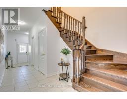 Move-in ready! Stunning 3-bedroom, 3.5-bath freehold townhome in the prestigious Joshua Creek community. Prime location within walking distance to parks, top-rated schools, and shopping, with easy access to major highways.This beautifully maintained home features hardwood floors, 9-foot ceilings on the main level, interior garage access, upper-level laundry, pot lights, a solid oak staircase, and a professionally finished lower level. The home has been newly professionally painted throughout. Exterior highlights include patterned concrete front steps and a rear patio, offering stylish low-maintenance outdoor living.The well-designed open-concept main floor features a spacious kitchen and dining area with dark cabinetry, granite countertops, and stainless steel appliances. The inviting family room offers hardwood flooring, a cozy gas fireplace, and a walkout to a private, sunny south-facing backyard-perfect for entertaining.Upstairs, the generous primary bedroom retreat features double-door entry, his-and-hers closets (including a walk-in), and a private ensuite with a soaker tub and separate shower. Two additional well-sized bedrooms, a full main bathroom, and a large second-floor laundry room complete the upper level.The professionally finished basement offers a spacious open-concept recreation room with extensive pot lighting, built-in shelving, and a full 3-piece bathroom with an oversized shower, along with additional storage and a cold room-ideal for family enjoyment.Immaculate and move-in ready. Perfect for buyers seeking upscale living with minimal yard maintenance.1,981 sq ft above grade plus 883 sq ft finished basement (over 2,800 sq ft total living space). (id:61594)