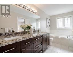 PRESTIGIOUS JOSHUA CREEK! Executive three bedroom freehold townhome ideally situated in one of Oakville's most desirable neighbourhoods, just steps to shopping, restaurants, parks, and Joshua Creek Public School. Enjoy close proximity to Iroquois Ridge High School, Iroquois Ridge Community Centre, shopping centres, transit, and highways - everything you need is close at hand. Designed for modern living, the open concept main level features 9' ceilings, hardwood flooring, and inviting living and dining areas complemented by a cozy gas fireplace. The well-appointed kitchen is equipped with granite countertops, stainless steel appliances, and a bright breakfast area with walkout to the patio. Upstairs, the spacious primary retreat includes a walk-in closet and spa-inspired five-piece ensuite with double sinks. Two additional bedrooms, one with a walkout to a covered balcony, a four-piece bathroom, and a convenient laundry room complete the upper level. Additional highlights include a covered front porch, hardwood flooring throughout the upper level, inside entry from the attached garage, and a fully fenced backyard featuring an interlock patio and cabana - perfect for outdoor enjoyment. Ideal for commuters with easy access to public transit, major highways, and the GO Train. Experience the perfect blend of comfort, convenience, and community in one of Oakville's most sought-after neighbourhoods! (certain images have been digitally enhanced) (id:61594)