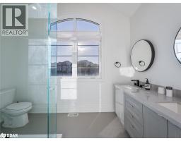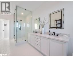 This one of a kind home was customized with the most luxurious details and finishes from top to bottom. Located on a private street at the south end of Milton bordering Oakville, this oversized pie lot with ravine and privacy matches the spacious 5,200sqft home. To name a few details you don't want to miss: the Main level features 10ft ceilings and the most stylish entertaining space. A top of the line custom Bloomsbury kitchen with stunning 10ft marble island with built-in wine trough for the ultimate in entertaining. Custom European 9ft French doors across the back of the house lead to the large deck overlooking greenspace. The upper level has 9ft ceilings and 5 bedrooms with 3 full washrooms all featuring beautiful tile and glass showers. The 5th bedroom has been converted into a spacious dressing room off the primary. Finished basement with walk-out to incredible yard features a great room, gym, studio, and four storage areas! Huge pool sized yard faces south and overlooks the conservation area. Too much to list, certainly a house you have to see. (id:61594)