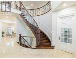 A timeless custom-built residence in prestigious South Richvale, one of Richmond Hill's most sought-after neighbourhoods. Situated on a premium 75 x 148 ft lot, this elegant home offers over 6,800 sq.ft. of refined living space, featuring 10 ft ceilings on the main floor and 9 ft ceilings on the upper and basement levels-perfectly blending classic design with modern comfort.A grand 20 ft foyer welcomes you with Italian marble flooring, a crystal chandelier, and an octagonal dome skylight with LED cove lighting. The living room impresses with soaring ceilings, hardwood floors, and a dramatic two-storey stone feature wall.The formal dining room features hardwood flooring, pot lights, and a coffered ceiling-ideal for hosting. The family room offers a warm and inviting space with a waffle ceiling, fireplace, and custom built-ins. A private office with custom cabinetry and walkout to the patio provides a perfect work-from-home setting.The gourmet kitchen is the heart of the home, complete with a large centre island, sleek cabinetry, and premium built-in appliances. The bright breakfast area opens to a custom deck, creating seamless indoor-outdoor living.Upstairs, the luxurious primary suite features a spa-inspired 7-piece ensuite and a custom walk-in closet. A second bedroom includes its own ensuite, while two additional bedrooms share a semi-ensuite.The finished walk-up basement is designed for both entertainment and functionality, offering a home theatre, wet bar, fitness room, and a nanny or guest suite.Professionally landscaped grounds complete this exceptional property-where timeless elegance meets modern luxury. (id:61594)