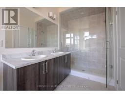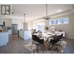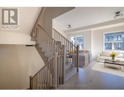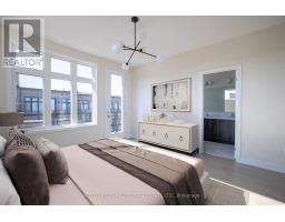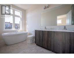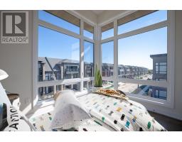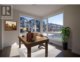 Welcome to Upper Joshua Creek. This modern end unit townhome offers 5 bedrooms, 4 full and 1 half baths, and 2,560 sq ft of finished living space. The ground level opens to a welcoming foyer with a laundry room that has direct garage access, plus a bright corner bedroom with its own three piece ensuite. Hardwood and ceramic tile run throughout the home. The second floor is light filled with an open concept kitchen, dining, and living area under 10 ft ceilings. The kitchen features stainless steel appliances, a centre island, and generous storage. The dining room has a walkout to the balcony for easy indoor to outdoor entertaining, and a powder room completes the level. The primary bedroom includes a private balcony and a 5 piece ensuite with a freestanding deep soaker tub, seamless glass shower, and a double vanity with undermount sinks. Three additional bedrooms and two 4 piece baths provide flexible space for family, guests, or a home office. Minutes to 403, QEW, and 407, and close to parks, trails, shops, and well regarded schools. (id:61594)