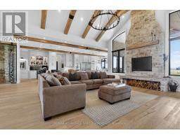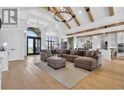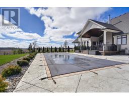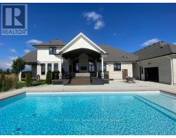 Situated in a picturesque setting on almost 2 acres surrounded by farms and beautiful countryside just 10 min north of London on the outskirts of Ilderton awaits this 3 year old stunning bungaloft home with 4338 sf of living space above grade. Set well back from the road with a long asphalt drive an concrete gutters awaits your new home. Magnificent curb appeal! 4 car garage with epoxy floors, speaker system, kitchen with gas stove and smaller 5th rear access door. Inground saltwater swimming pool (sports pool) with stamped concrete surrounding. 2 rear covered decks with composite decking are perfect for entertaining! The interior of the home is stunning with a great room featuring cathedral ceilings with wood beams and floor to ceiling wood burning high end Napolean wood burning fireplace with built-in wood box. The main floor has beautifully engineered 8 inch wide hardwood. The chef's gourmet kitchen has custom built-in high appliances and features double islands and walk-in pantry. Coffee bar off the dining area and custom glass wine cabinet. You'll enjoy the cigar/sunroom at the rear overlooking beautiful countryside panoramic views. 5 bedrooms: Main floor master retreat with 5 piece ensuite with heated flooring plus 2 main floor bedrooms both with 3 piece ensuites. The 2 upper bedrooms share a 4 piece ensuite. The lower level is framed and electrical awaiting your finishing touches. Garage has in-floor heating roughed in. (id:61594)