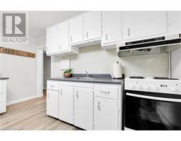$489 MonthlyPRICED TO SELL and CHEAPER THAN RENTING!!! Welcome to this nicely updated, move-in ready, 1 bedroom unit with quality vinyl windows in every room, in an unbeatable and extremely desirable location, directly across from Spencer Smith Park, Spencer's at the Waterfront, and the Art Gallery of Burlington, and literally steps to the lake, trails, hospital, and downtown Burlington, and only a minute to the QEW, 403 and 407. This unit is on the first floor, has spacious principal rooms, including the living room, large eat-in kitchen, and primary bedroom, and has lots of quality updates throughout. Updates include ALL NEW in 2024: luxury wide plank vinyl flooring and 4 baseboards throughout, updated 4-piece bathroom with new vanity, countertop/sink, sink faucet, mirror, light fixtures, showerhead, and toilet, refreshed white kitchen cabinetry professionally painted inside and out, new fridge and stove, portable AC unit, and lighting, and freshly painted throughout. This unit shows 10+++. The complex has a nice community feel, is very quiet, well maintained, and has a great condo board. Complex amenities also include visitor parking, onsite laundry, and bike storage. The low monthly fee includes PROPERTY TAX, water, cable tv, unlimited high-speed internet, and storage locker. Optional parking space is $550/year. 2nd space may be available if needed. No dogs and no rentals/leasing. Don't wait and miss this opportunity for affordable living, in this very nicely updated unit, directly across from the lake and just about every other amenity! Welcome Home! All furniture negotiable and less than 2 years old. Quick closing available! (id:61594)