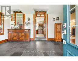 Step into a timeless masterpiece where history and luxury intertwine! This breathtaking solid stone home, crafted with unparalleled artistry in 1877, has been lovingly restored to preserve its old-world charm while seamlessly blending modern sophistication. Nestled at the heart of 138 pristine acres, this enchanted estate captivates with mature trees, vibrant perennial gardens, a cascading waterfall, and a serene pond that create a private paradise of tranquility and natural beauty. Inside, every detail exudes elegance. Expansive country kitchen, adorned with custom solid cherrywood cabinetry and gleaming granite countertops, invites culinary creations and warm gatherings. Grand family room, bathed in natural light through abundant windows, features cozy gas fireplace and rich hardwood floors, perfect for creating cherished memories. Original wide-plank pine flooring, meticulously refinished, flows throughout, complemented by restored trim, doors, sconces, and intricate ceiling medallions that whisper stories of a bygone era. Main floor boasts a gracious foyer, a center hall plan, convenient laundry room, and sophisticated office wrapped in cherrywood cabinetry. Upstairs, the sprawling primary bedroom is a sanctuary of indulgence, complete with luxury ensuite and generous walk-in closet. Modern upgrades enhance comfort without compromising the homes historic soul. Beyond the residence, the estate shines with 100 acres of fertile farmland, 38 acres of majestic forest, and fenced pasture meadows, ideal for agricultural dreams or equestrian pursuits. Thoughtfully improved barns and outbuildings add versatility and charm to this historic homestead. Set in the serene Ashton countryside, with paved access to HWY 7 and minutes from Ashtons quaint amenities, this rare gem offers seclusion and convenience. Don't miss this extraordinary opportunity to own a piece of history, reimagined for modern living-a legacy estate where every moment feels like stepping into a storybook. (id:61594)