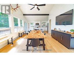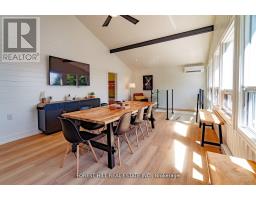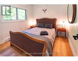 Discover "The Getaway" a meticulously renovated 4 season lakeside cottage, offering opulent interiors and awe-inspiring panoramic vistas of Buck Lake. Delight in outdoor escapades with water toys, a dock, and a sandy lake entry for leisurely swims. Unwind in the indulgent hot tub or gather around the inviting fire pit under starry skies. With 4 bedrooms, 2 bathrooms, and tranquil surroundings, The Getaway ensures an unparalleled retreat for those seeking the quintessential cottage experience. Enjoy serene views of the lake through expansive windows spanning the entire front of the dining and kitchen area, bathing the space in natural light. Step onto the deck to soak in the breathtaking scenery, or unwind in the large HOT TUB nestled amidst the tranquil surroundings and relax in the new wood burning SAUNA. The Getaway is full furnished with all furniture, TVs, kitchen supplies and accessories. Situated just 20 minutes west of Huntsville, Buck Lake offers quiet enjoyment and fantastic fishing. This private lot offers 100' water frontage, year round access, GENERATOR, a newly Paved driveway, and New Roof. (id:61594)