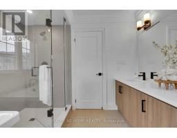 Welcome to this stunning, never-lived-in luxury home featuring over $300,000 in builder upgrades, situated on a massive pie-shaped lot - perfect for a swimming pool! Offering more than 3,800 sq. ft. of finished living space, this home is ready for its first occupant and comes with full Tarion Warranty coverage.Step inside and experience modern elegance with an open-concept layout, oak hardwood flooring, and soaring 9' smooth ceilings adorned with pot lights and crown moulding throughout the main level.The custom chef's kitchen showcases a quartz waterfall island with an extended breakfast bar, upgraded cabinetry, and KitchenAid stainless steel appliances - ideal for entertaining and family gatherings.Enjoy the exquisite family room featuring coffered ceilings and a gas fireplace, creating a perfect space to relax in comfort and style.Ascend the solid oak staircase to the second floor, where you'll find the primary bedroom retreat complete with a 5-piece ensuite boasting a double vanity, custom glass shower, and soaker tub. Each bedroom has access to its own ensuite bathroom, and the upper level also includes a convenient laundry room and an additional loft area ideal for a home office. Oak hardwood flooring continues throughout the second level.The basement has been professionally finished by the builder, featuring a 3-piece bathroom, offering additional living or recreational space.Enjoy direct access to the double car garage through a mudroom with ceramic flooring and custom built-ins for added convenience.Located on a quiet crescent in one of Bowmanville's most prestigious neighbourhoods, close to parks, schools, transit, and all major amenities, with easy access to Highways 401 & 407. (id:61594)