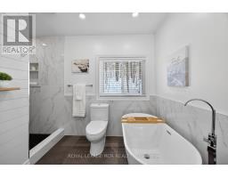 Tucked away on a private treed lot with just over an acre, this beautifully renovated raised bungalow, complete with a thoughtful addition, is located in the highly sought-after Sugarbush community of Oro-Medonte. Offering approximately 2,500 sq. ft. of total finished living space, this home delivers a blend of luxury, location, and lifestyle. The home features 3+1 bedrooms and three full 4-piece bathrooms, including two recently updated and stylish, with one upgraded from a former 2-piece, enhancing functionality and value. Enter through a spacious foyer, with a few stairs leading up to the welcoming main level filled with natural light and finished with hardwood & tile flooring throughout. The open-concept layout connects the kitchen, dining, and living areas. The enlarged, modern kitchen showcases white shaker-style cabinetry with soft-close drawers, quartz countertops, stainless steel appliances, and an oversized island. From here, walk out to the wraparound deck overlooking peaceful natural surroundings or relax in the living room, anchored by a gas fireplace. The primary bedroom features an elegant, spa-inspired 4-piece ensuite with a freestanding tub and stand-up shower, while two additional generously sized bedrooms and a beautifully finished full bathroom complete this floor. The bright ground level offers additional living space with a family room featuring an electric fireplace, a fourth bedroom with a 4-piece semi-ensuite, a laundry room, and direct access to the double garage. Outdoors, enjoy the tranquility of nature with a hot tub and fire pit, with added conveniences including a sprinkler system, gas BBQ hookup, shed, and generator. Ideally located minutes from Horseshoe Valley Resort, the new Horseshoe Heights School, Hwy 11 and Hwy 400, and only 20 minutes to Barrie or Orillia. Enhanced by thoughtful renovations throughout, this move-in-ready home offers privacy, timeless design, and a welcoming setting to enjoy every season. (id:61594)