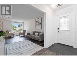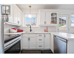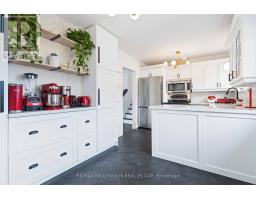Welcome to this beautifully updated and meticulously maintained home, ideally situated in the highly sought-after Bay Ridges neighbourhood-a family-friendly community just steps to the lake. Perfectly located within walking distance to the GO Train, public transit, top-rated schools, community centre, parks, shops, and an array of services, this home also offers a quick 5-minute drive to Highway 401, making it a commuter's dream.Step inside to a sun-drenched, open-concept living space featuring a large living room with hardwood floors, a picture window, and sleek floating cabinetry. The elegant dining area is adorned with a stunning feature wall and flows into a modern kitchen boasting quartz countertops, herringbone tile flooring, a built-in coffee bar, decorative shelving, and a walkout to a charming patio-ideal for indoor-outdoor entertaining.The upper level includes three spacious bedrooms, all with hardwood flooring, and an updated 4-piece bath. Downstairs, you'll find a fully finished family/recreation room painted in designer tones, complete with pot lights, built-in bookshelves, and a new vinyl floor. The updated 3-piece bathroom and laundry room with built-in cabinetry, stainless sink, and generous counter space-add to the home's functionality. A massive crawl space offers tons of additional storage.Extras include top-down/bottom-up window shades in the bedrooms, a newer A/C (2022), garden shed, and a good-sized yard with brand new wood fencing-perfect for family living or entertaining.This home blends comfort, convenience, and character in a prime location! (id:61594)