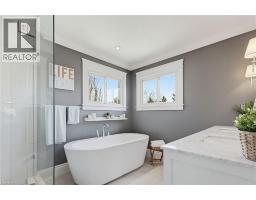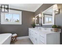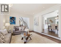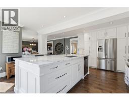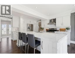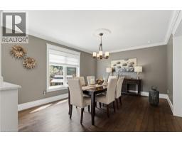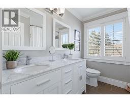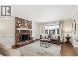 Welcome to this beautifully maintained home in the highly sought-after Tyandaga neighbourhood of Burlington, set on a quiet, family-friendly street and backing onto a ravine for added privacy. With excellent curb appeal & a double car garage, this home offers a perfect blend of space, comfort, and setting. The main floor features an open concept layout with separate living, dining, and family rooms, ideal for both everyday living and entertaining. The living room offers a bright, welcoming space with a gas fireplace, while the family room provides a relaxed setting with a wood-burning fireplace. Hardwood flooring runs throughout, complemented by California shutters, crown moulding, large baseboards, and pot lights throughout the main floor. The updated kitchen features an oversized centre island, stylish backsplash, and a seamless flow into the dining area. A sliding glass door leads to the backyard, filling the space with natural light and creating easy indoor-outdoor living. Main floor laundry adds convenience. Upstairs offers four generously sized bedrooms, providing comfortable accommodations for families of all sizes. The primary suite serves as a private retreat, featuring dual closets and a spacious ensuite complete with double sinks, a separate shower, heated floors, and a deep soaker tub. The additional bedrooms are bright and spacious, each offering ample closet space and flexibility for children, guests, or a dedicated home office. The finished basement extends the living space with a large recreation area and a separate bedroom, ideal for guests, a home office, or extended family, along with additional space for storage. The backyard is a standout, set on a larger lot backing onto a ravine, offering a private and peaceful setting with mature trees and frequent wildlife. Enjoy a heated pool and a low-maintenance two-tier composite deck, perfect for relaxing, entertaining, and summer gatherings. Close to schools, parks, golf, shopping, & major highways. (id:61594)