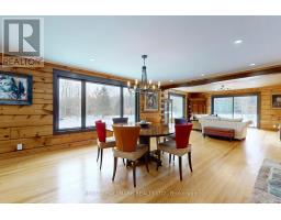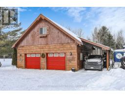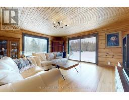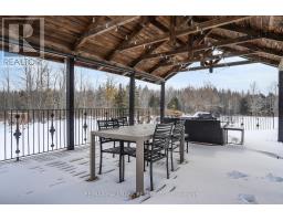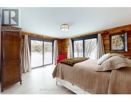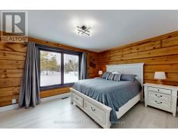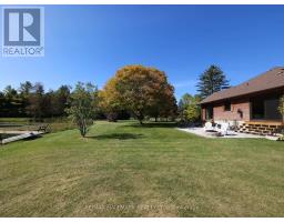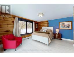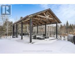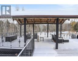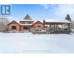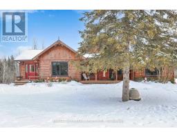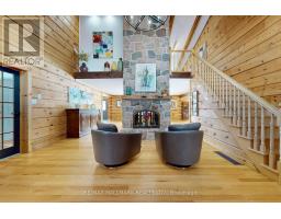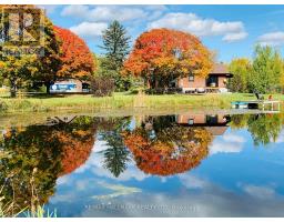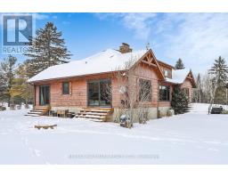 Exceptional Bungalow On Breathtaking 50 Acres Offering Over 4,000 Sqft Of Total Living Space In Uxbridge's Scenic Countryside! A grand foyer w/soaring 16ft ceilings leads into a thoughtfully designed home filled w/oversized Renewal by Andersen panoramic windows and sliding doors (2021). A striking 2-sided fieldstone fireplace anchors the living spaces. The fully upgraded 2024 modern kitchen features custom cabinetry, quartz counters&backsplash, large centre island, 2 pantries, custom tilework, new kitchen exhaust, and all new smart Energy Star stainless steel appliances. Walk out to a custom 1,350sqft 2-tier sun deck w/a massive 445 sqft gazebo overlooking the pond, plus an interlocked fire-pit sitting area. The main floor features a serene primary suite w/walkout to pond&backyard, picture window overlooking the front garden, generous closet, and 4pc ensuite. 2nd bedroom w/large window, 4pc bath w/jacuzzi tub, and spacious mudroom w/vaulted ceilings, bay window, and convenient side-yard walkout, complete the level. Above, an approx. 800sqft loft provides versatile living space w/a 3rd bedroom&office or additional bedroom. The finished basement is perfect for entertaining, featuring a large bar area, 4th bedroom w/window&closet, and close access to a 4pc bathroom. Outdoors, enjoy a half-acre, 16ft deep natural spring-fed stocked pond w/bass&perch, ideal for swimming, fishing & winter skating, complete w/electrical rough-in for a pump. A detached 3 car garage includes a heated workshop w/plumbing&hydro, plus upper loft space. Additional features: efficient geo-thermal heating&air conditioning, 200-amp service w/copper wiring, owned hot water tank and water softener, central vacuum, new hard flooring in main floor bedrooms (2021)&new roofing over deck (2024). Located within the Oak Ridges Moraine, enjoy privacy, protected natural surroundings, abundant wildlife, and convenient access to town amenities&the GTA. Truly move-in ready rural living at its finest! (id:61594)