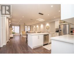 Welcome to this stunning, modern end-unit Condo Townhouse a true showpiece offering over 2,250 sf of luxurious open concept living space, with more than $120K in premium upgrades throughout. This exceptional 2 Story home features 3 spacious bedrooms, a versatile media/entertainment room and a beautifully finished in-law suite complete with its own Kitchen, Bedroom, Washroom, Living with Dining areas and a private laundry ideal for extended family or excellent income potential.The main level showcases gleaming laminate flooring, a chef inspired Kitchen with high end Stainless Steel appliances, elegant backsplash and a custom island perfect for entertaining. Large windows fill the space with lots of natural light, complemented by pot lights and an elegant and stylish electric fireplace.Walk out to a spectacular two-tier deck perfect for outdoor entertaining and relaxing.Upstairs you'll find three generously sized bedrooms, including a luxurious primary suite with a spa-like ensuite. A Flexible media room offers the ideal space for a home office or additional lounge. Enjoy the convenience of second floor laundry.This beautiful corner unit is located in a highly desirable neighborhood and features smooth ceilings throughout main floor, with convenient visitor parking right at your doorstep. Ideally situated close to Highways 401, 407and 412 as well as the Go Station, shopping, schools, public transit, and scenic trails offering both comfort and convenience with everything you need just minute away. (id:61594)